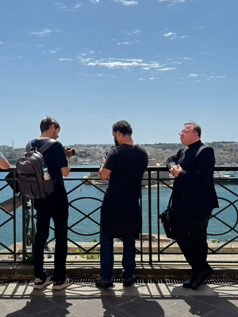 Gustavo comentou: “O Padre David foi muito gentil e acolhedor. Ele nos mostrou a cidade de Valletta, capital de Malta, que teve um significado especial na vida do Cardeal Newman. Durante nossa visita, o Padre David compartilhou informações sobre a jornada de Newman pelo Mediterrâneo, destacando os lugares que visitou e as impressões que essas experiências deixaram nele. Em nossa conversa com ele, pudemos compreender o quão significativa e transformadora essa parte da jornada havia sido para Newman. Foi como se as igrejas de tirar o fôlego e o ambiente sereno despertassem algo em seu coração, marcando um momento crucial em sua vida.”