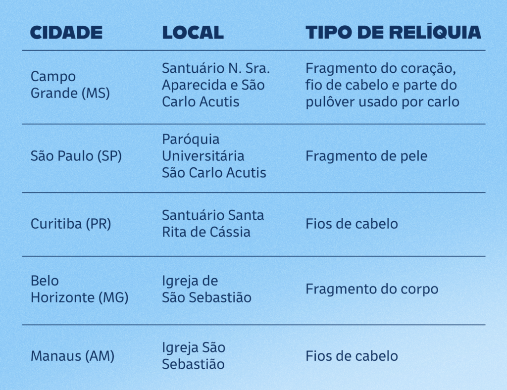 Abaixo, alguns locais onde é possível venerar suas relíquias no Brasil: